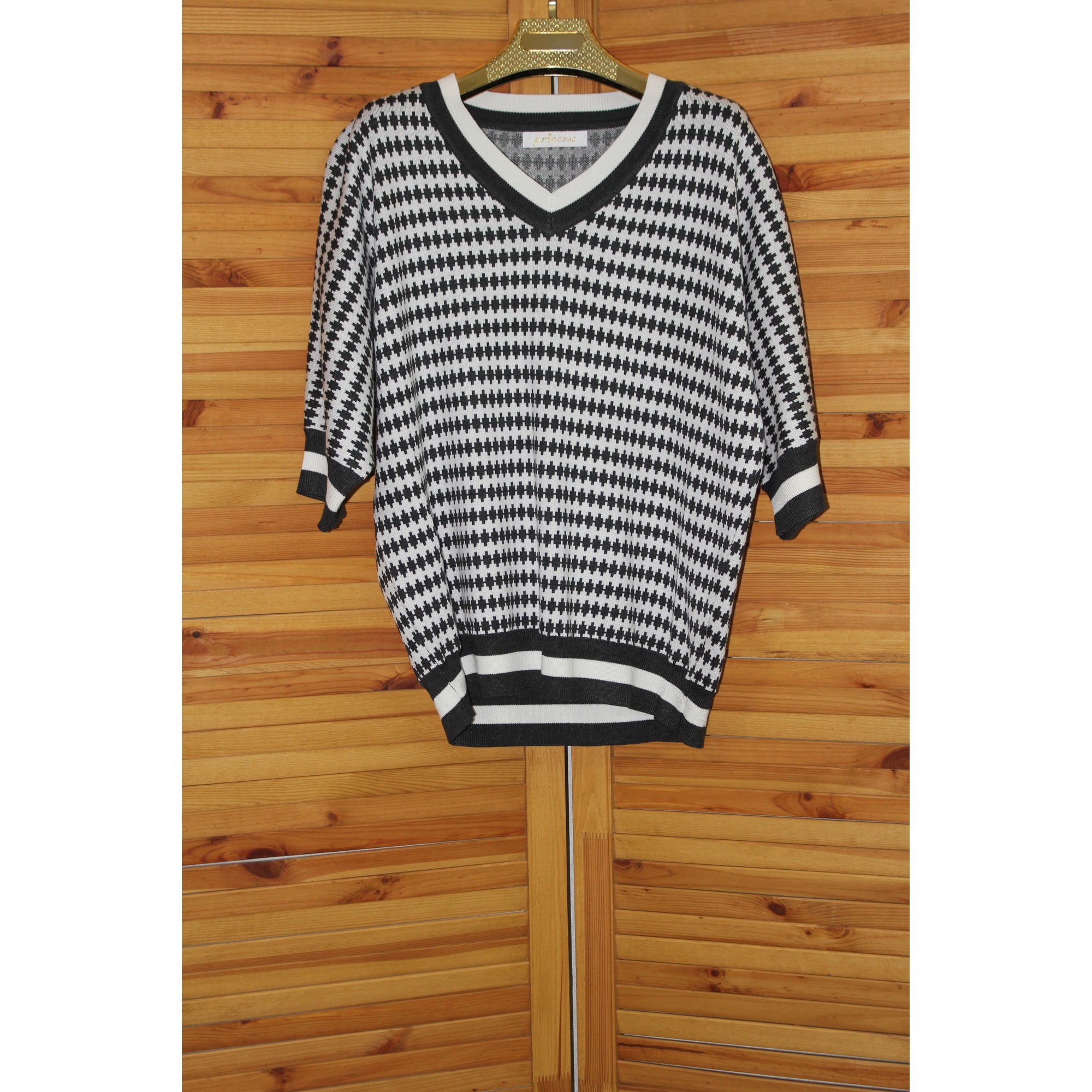 Джемпер с V образным вырезом, рукав 3/4. Низ и манжеты рукавов из эластичного материала